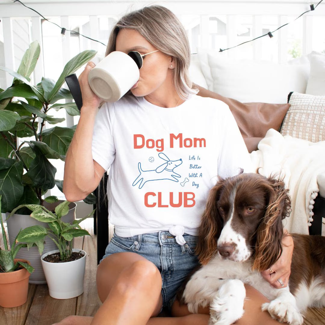 Join the Dog Mom Club in style with this retro inspired apparel for dog lover vibes. This social club themed t-shirt is the perfect gift idea for new puppy mom adventures and laid-back weekend walks. Whether you're headed to brunch or looking for dog park outfit inspiration, this comfy tee has you covered.