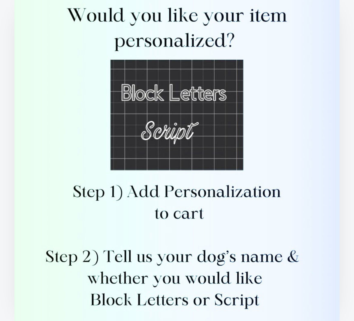 If your would like this bandana personalized, please tell us your dog's name in the Notes at checkout.